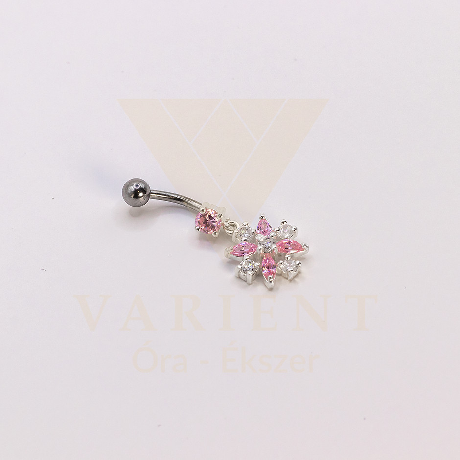 EZÜST KÖLDÖK PIERCING - FEHÉR - RÓZSASZÍN LÓGÓS VIRÁG